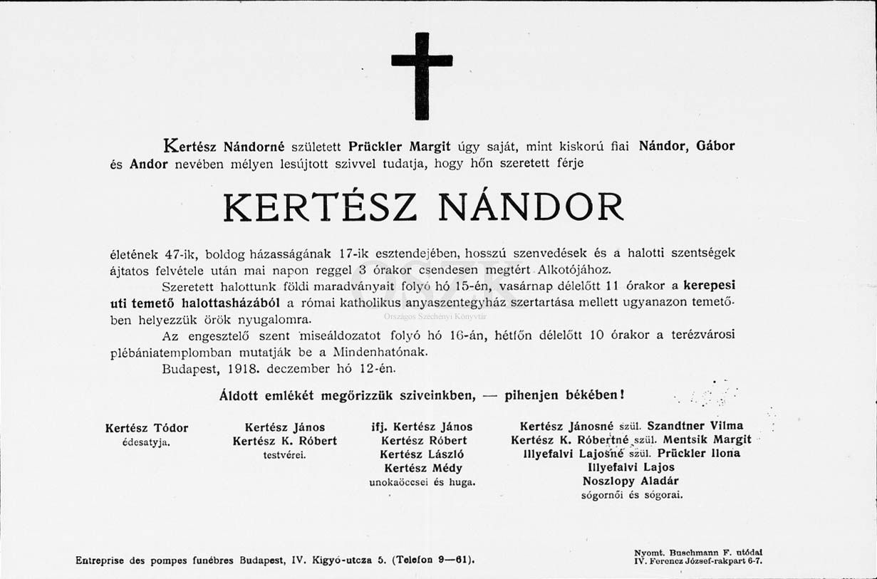 Kertész Nándor gyászjelentése