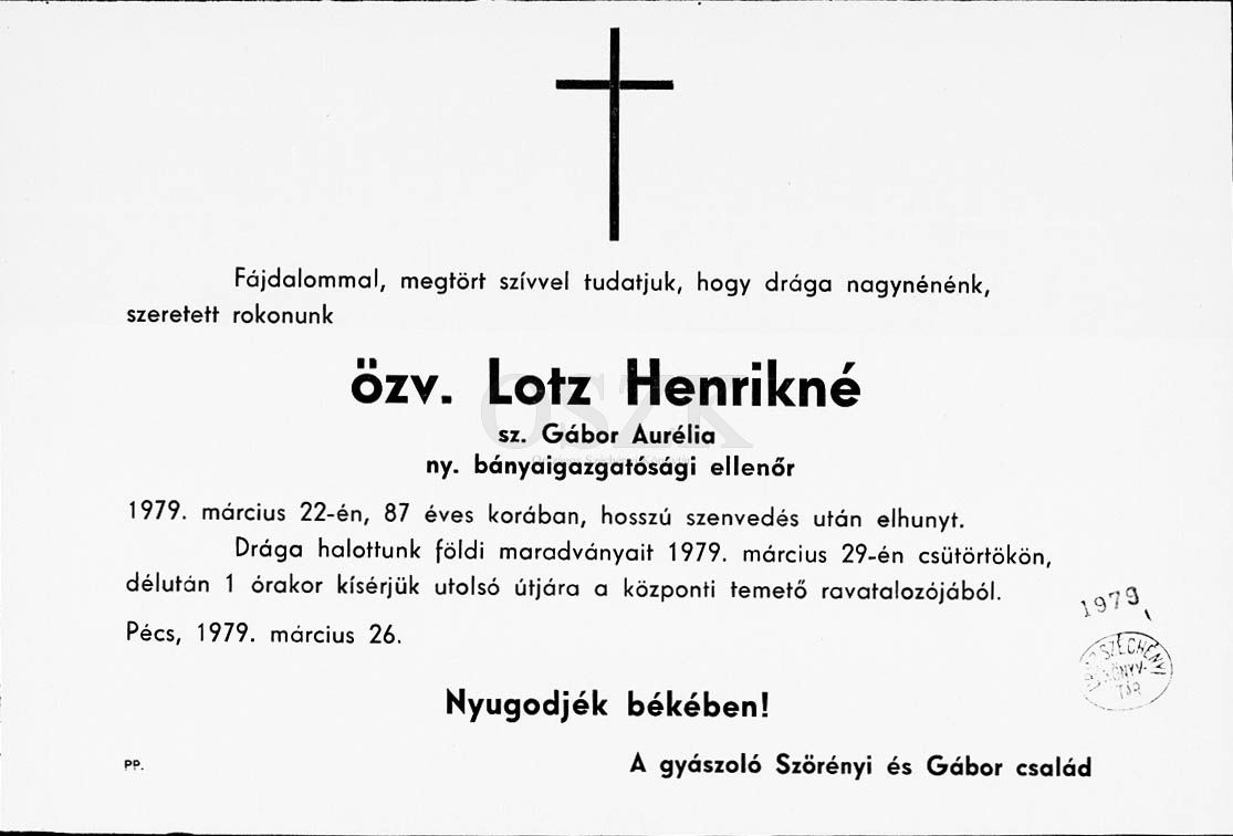 Lotz Henrikné Gábor Aurélia gyászjelentése