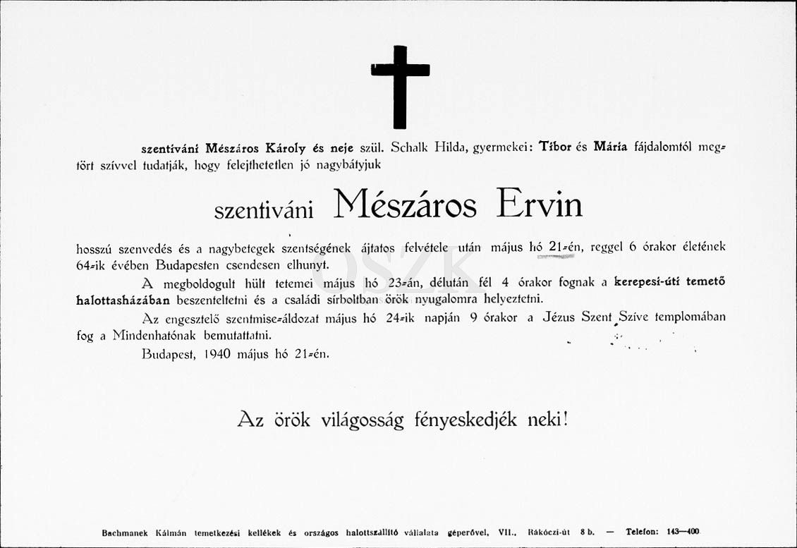 Mészáros Ervin gyászjelentése