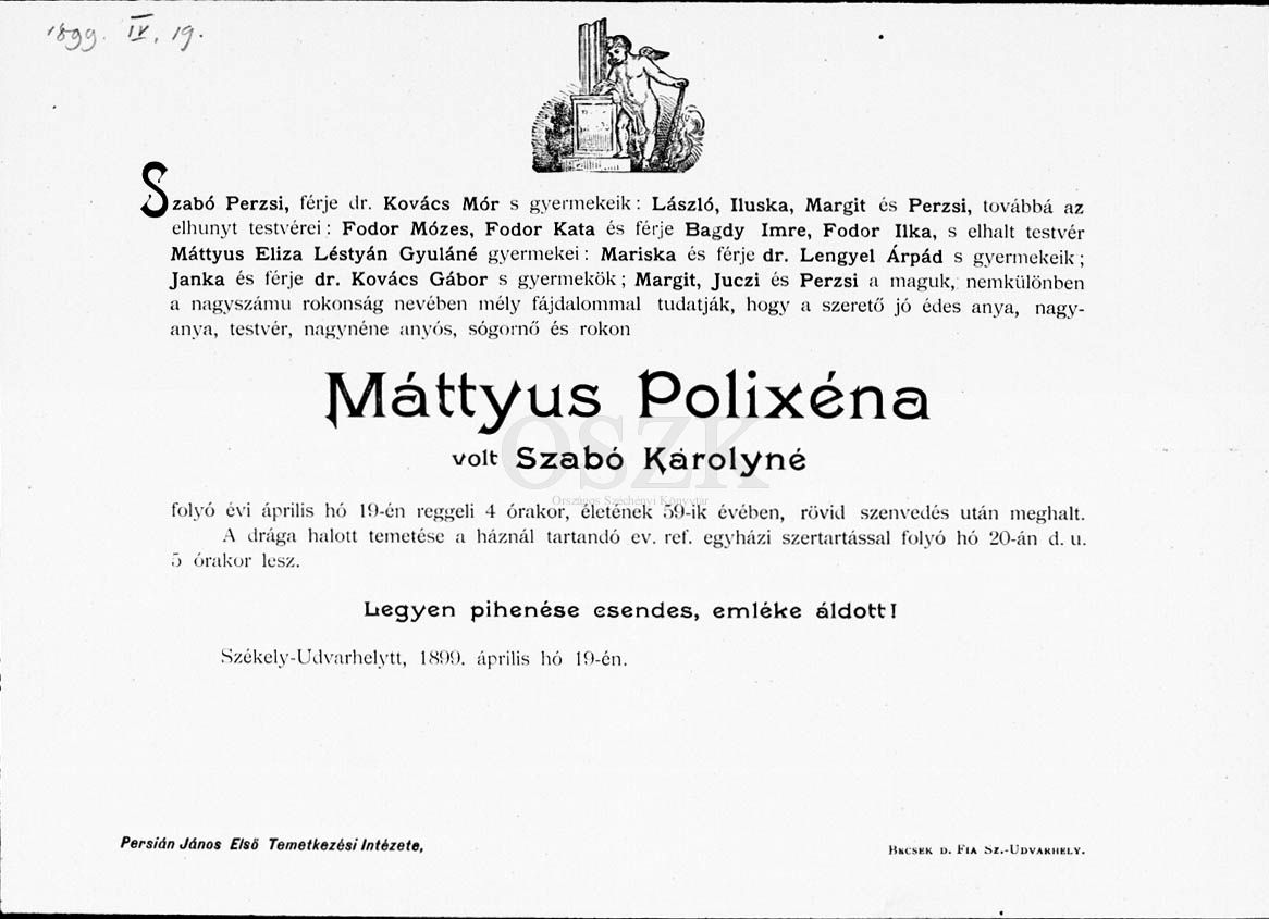 Szabó Károlyné Máttyus Polixéna gyászjelentése