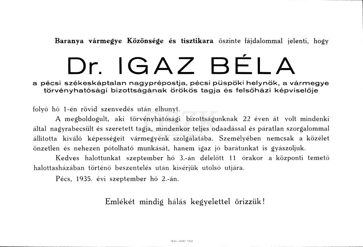Igaz Béla gyászjelentése