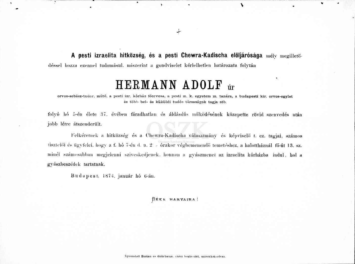 Hermann Adolf gyászjelentése
