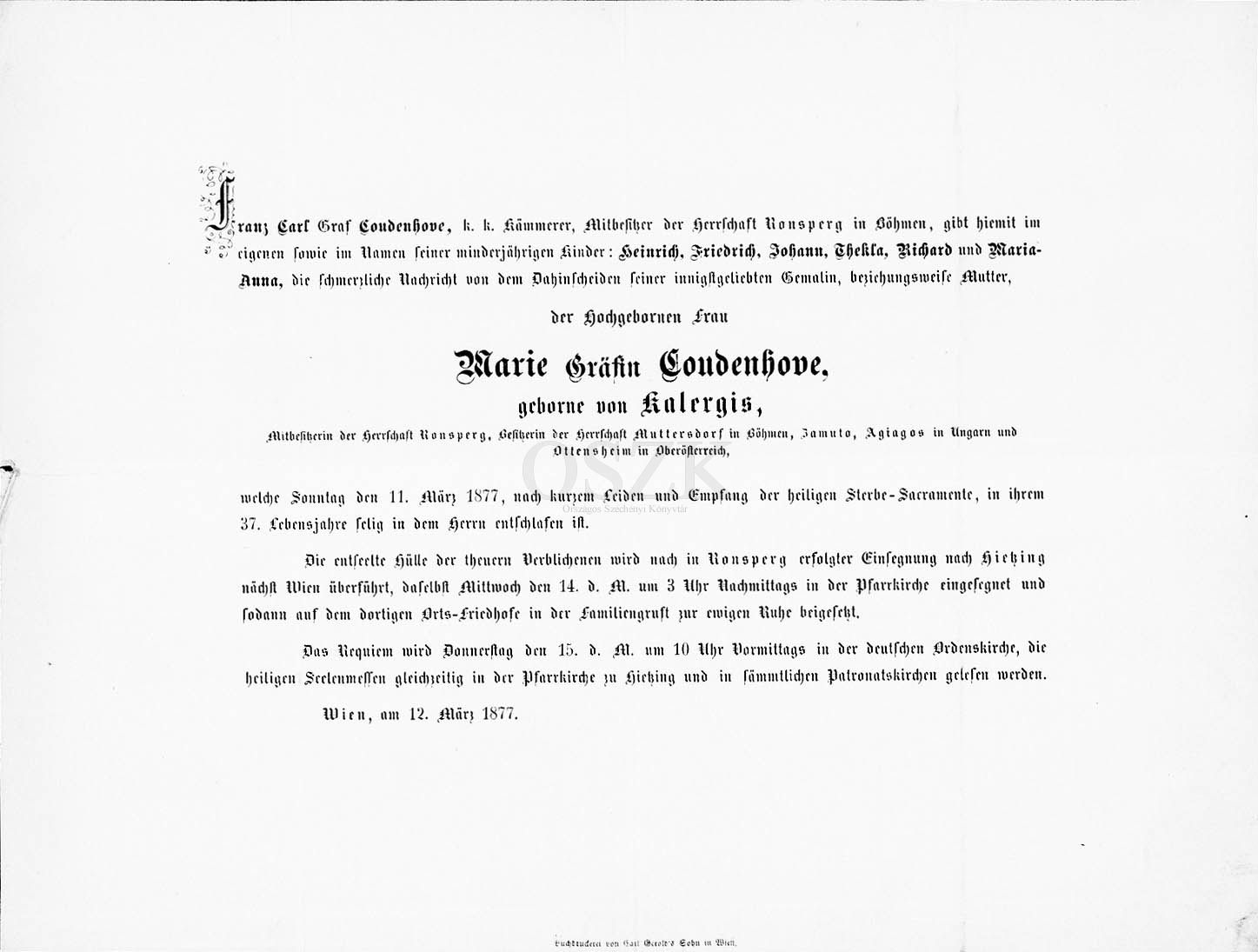 Coudenhove Marie Kalergis Marie gyászjelentése
