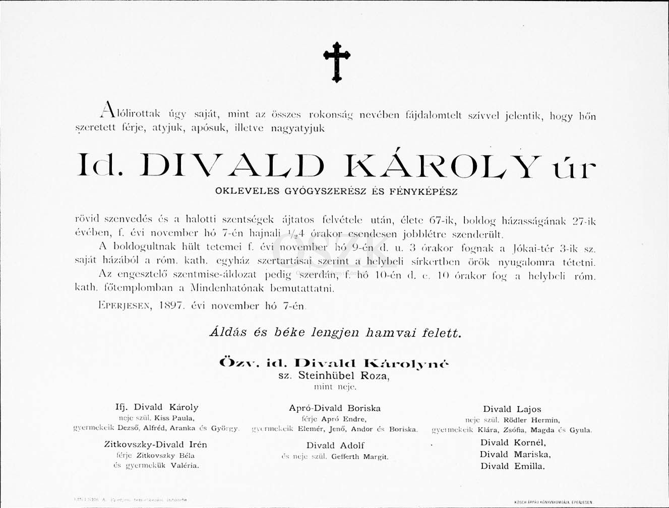 Divald Károly Divald Károly gyászjelentése