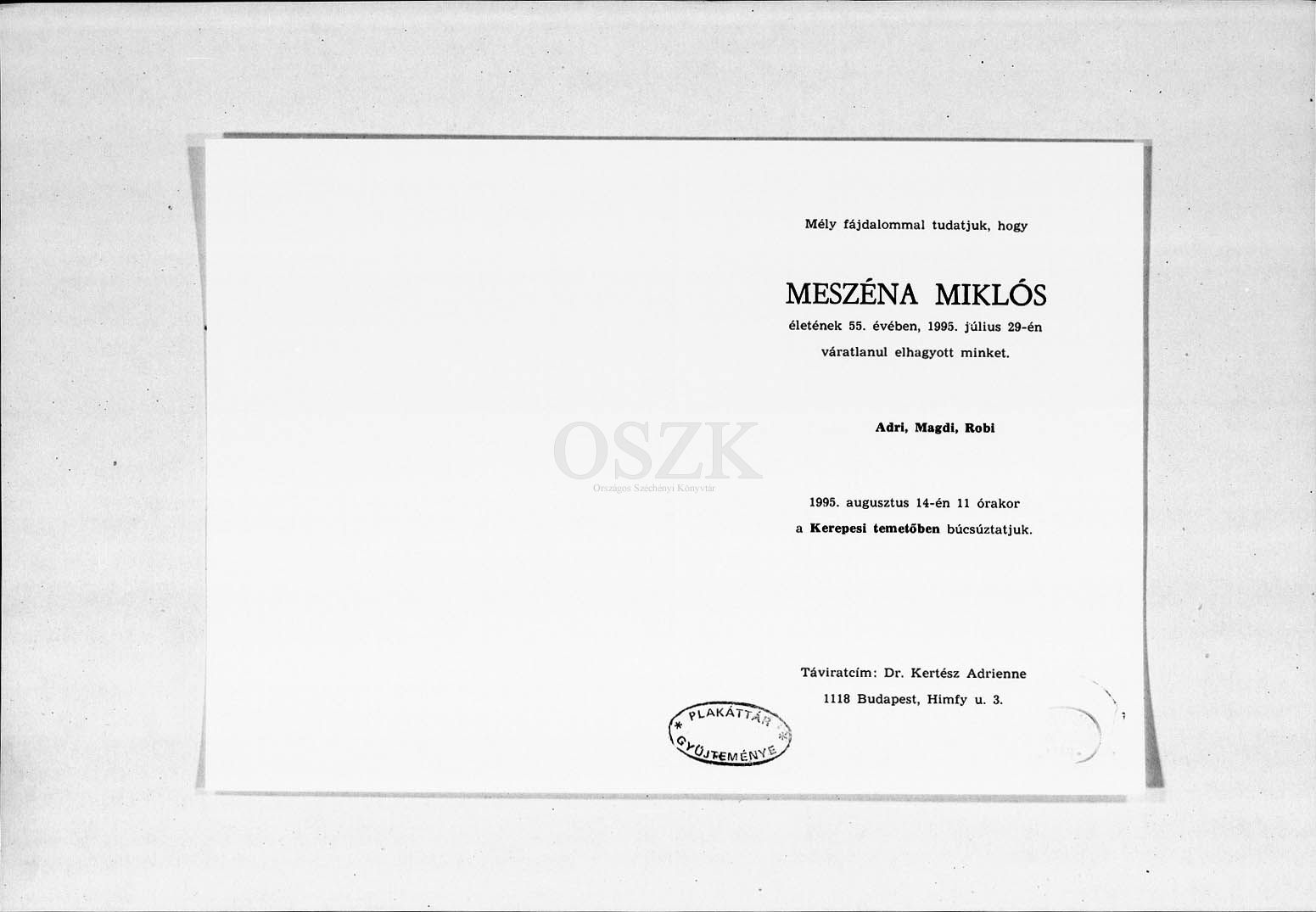 Meszéna Miklós gyászjelentése