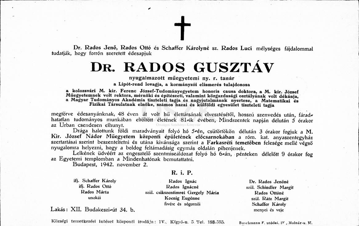 Rados Gusztáv gyászjelentése