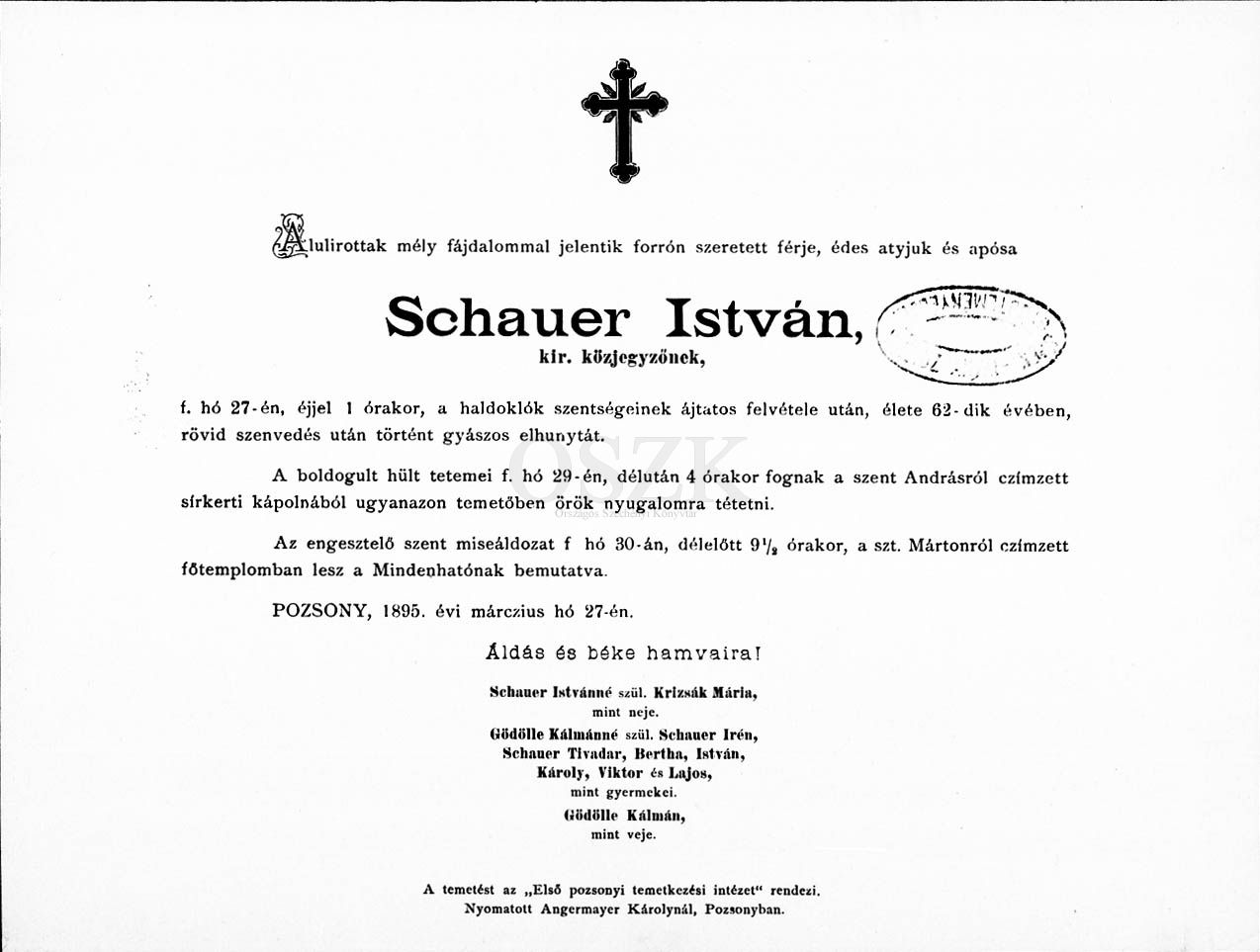 Schauer István gyászjelentése