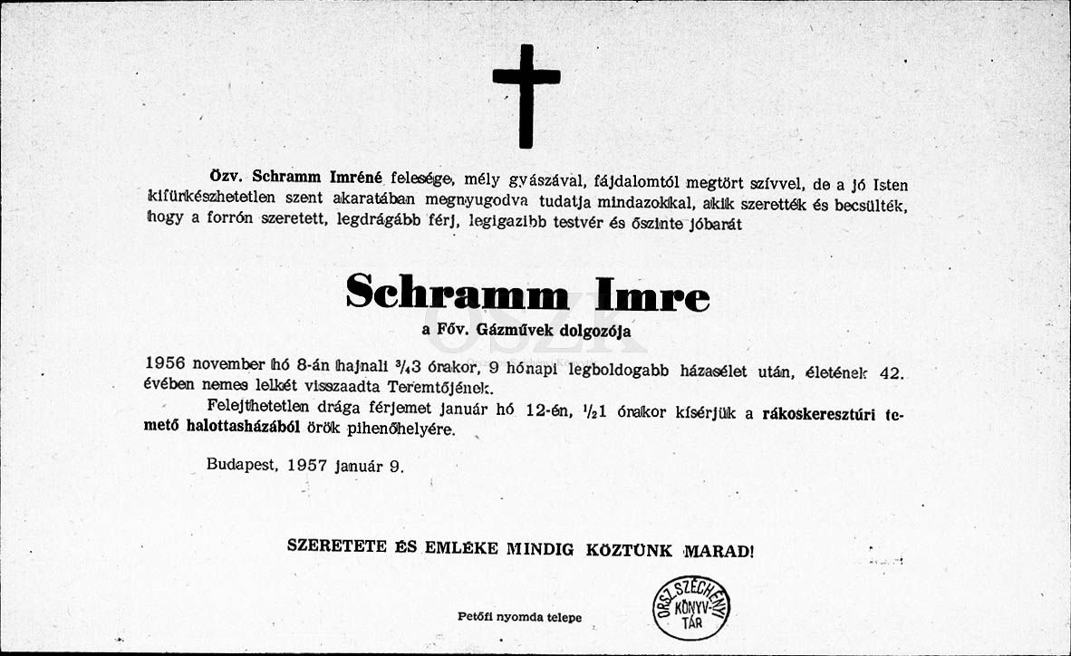 Schramm Imre gyászjelentése